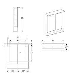 Geberit Acanto – Badkamer Bovenkast Met Interne Spiegel 450×820 Mm, Zand Grijs 500.639.JL.2