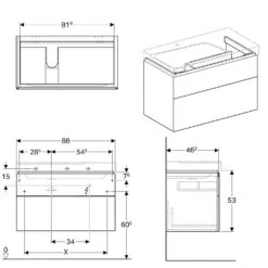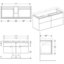 Wastafel, kraan en binneninrichting niet inbegrepen.