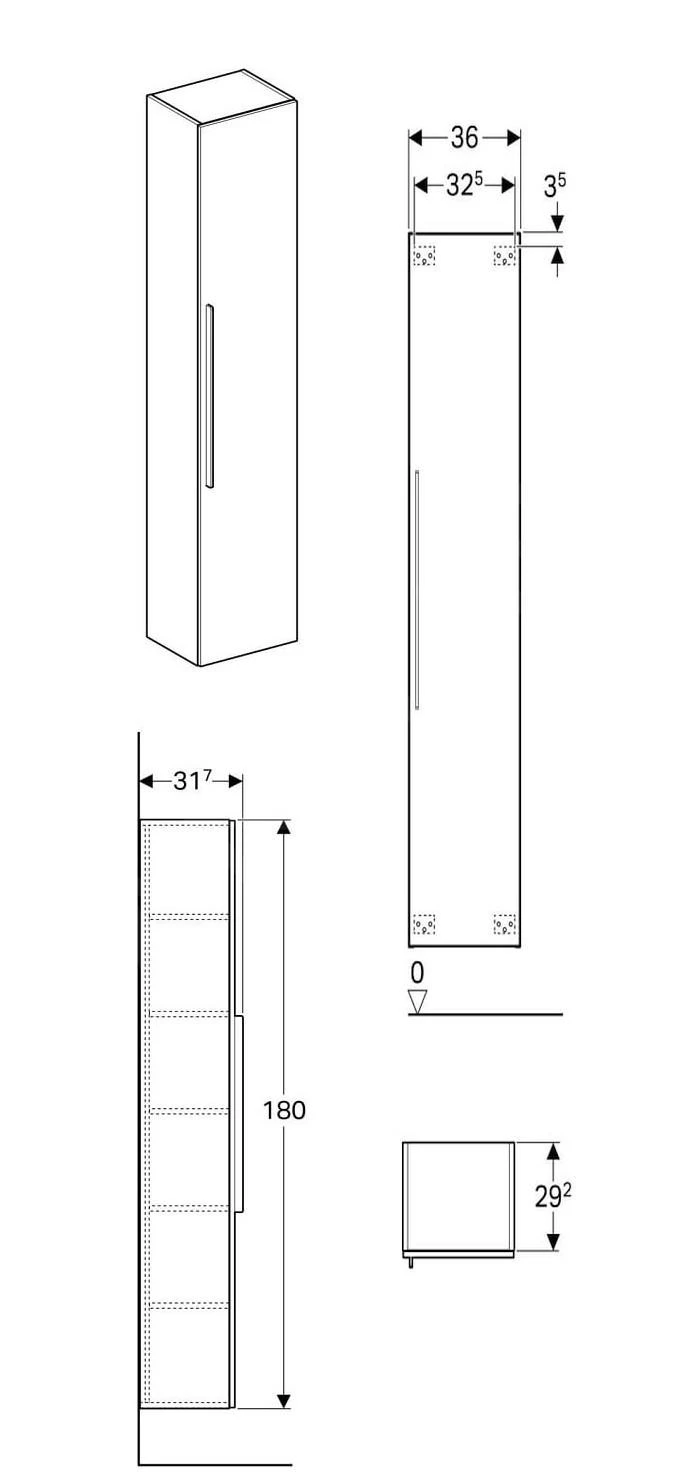 - afmetingen kastje: 38 x 180 x 31,7 cm (bxhxd)