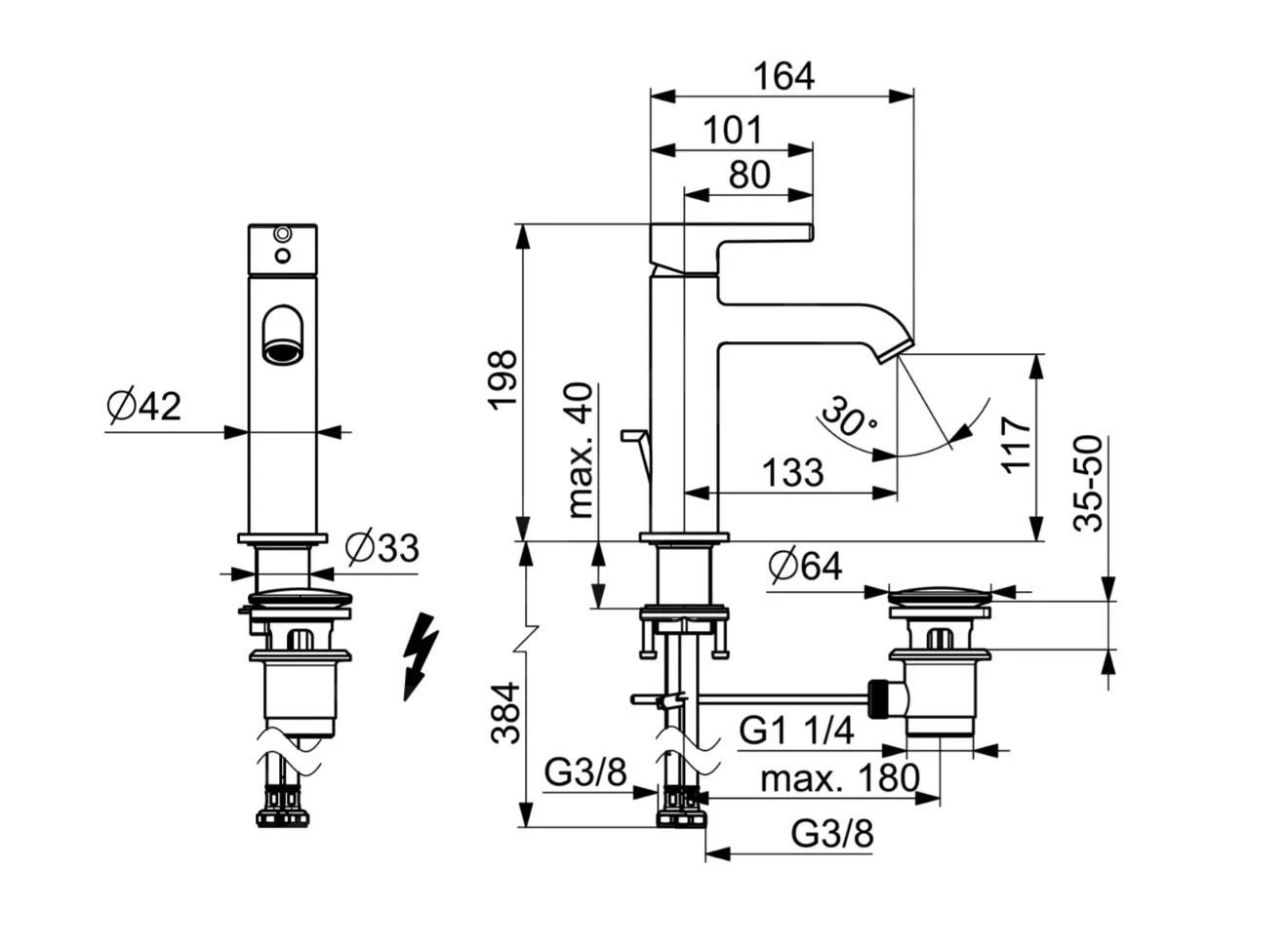 - functie voor de instelling van maximale watertemperatuur en -straal