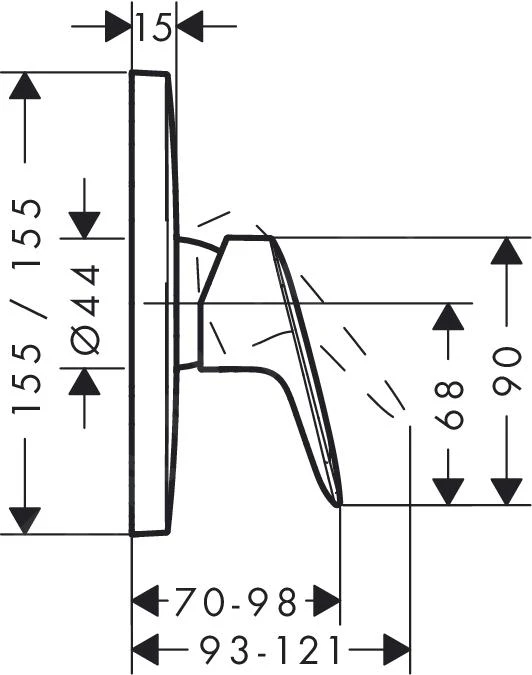 - de levering omvat: rozet, handgreep, flens, installatieblok