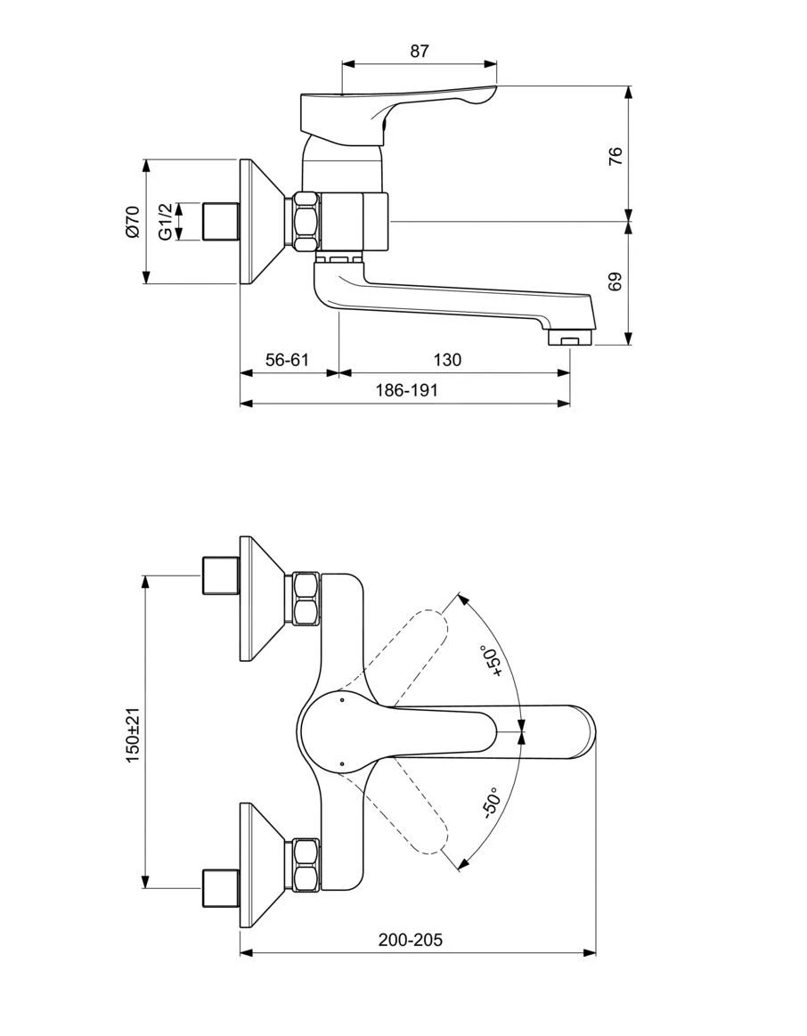 - warm/koud-aanduiding op de hendel, verchroomde afdekking