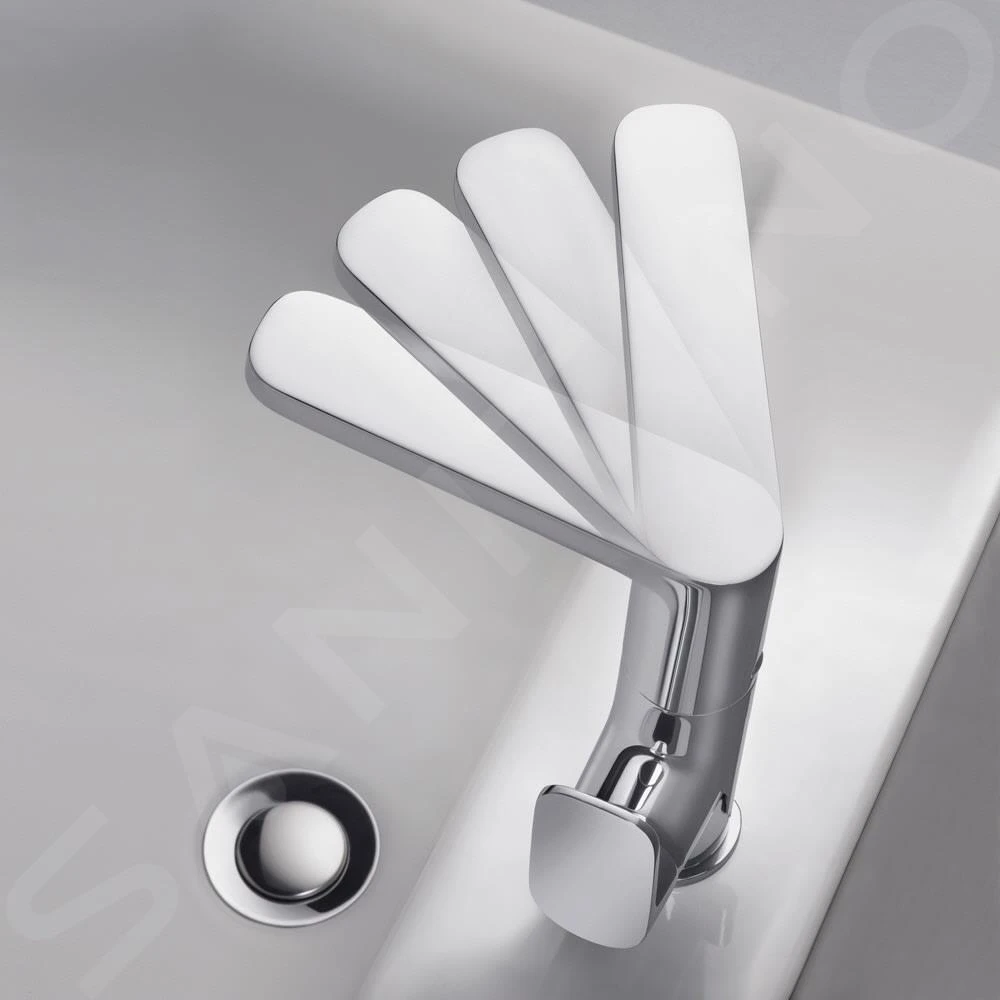Eengreeps wastafelkraan met hoge, draaibare uitloop