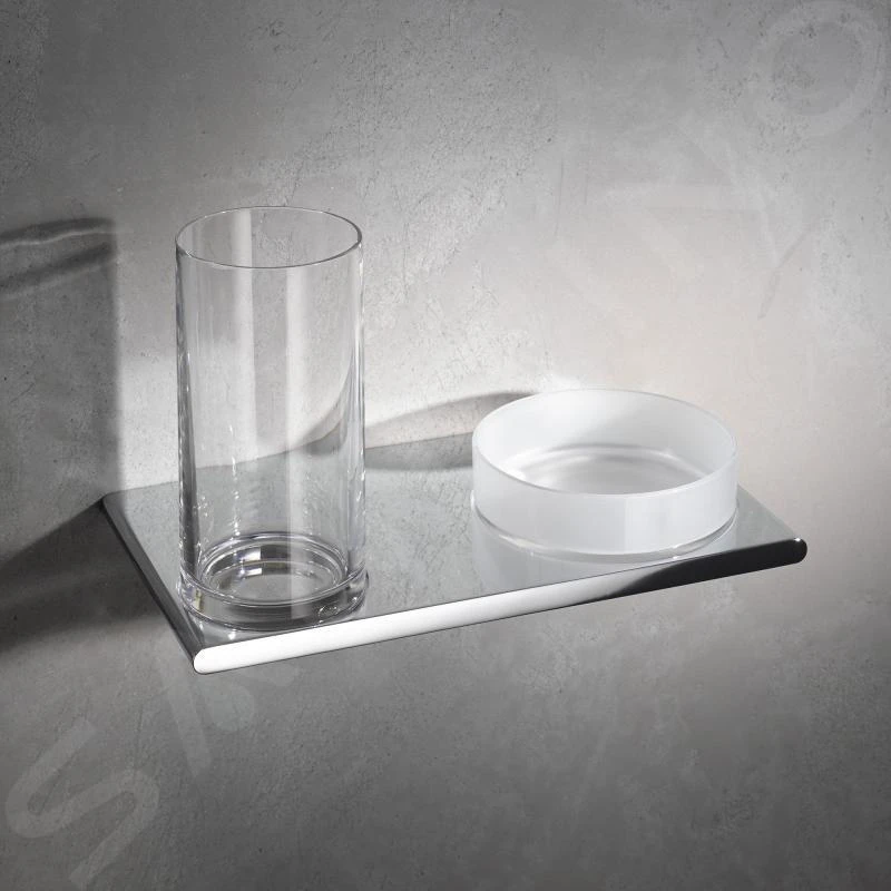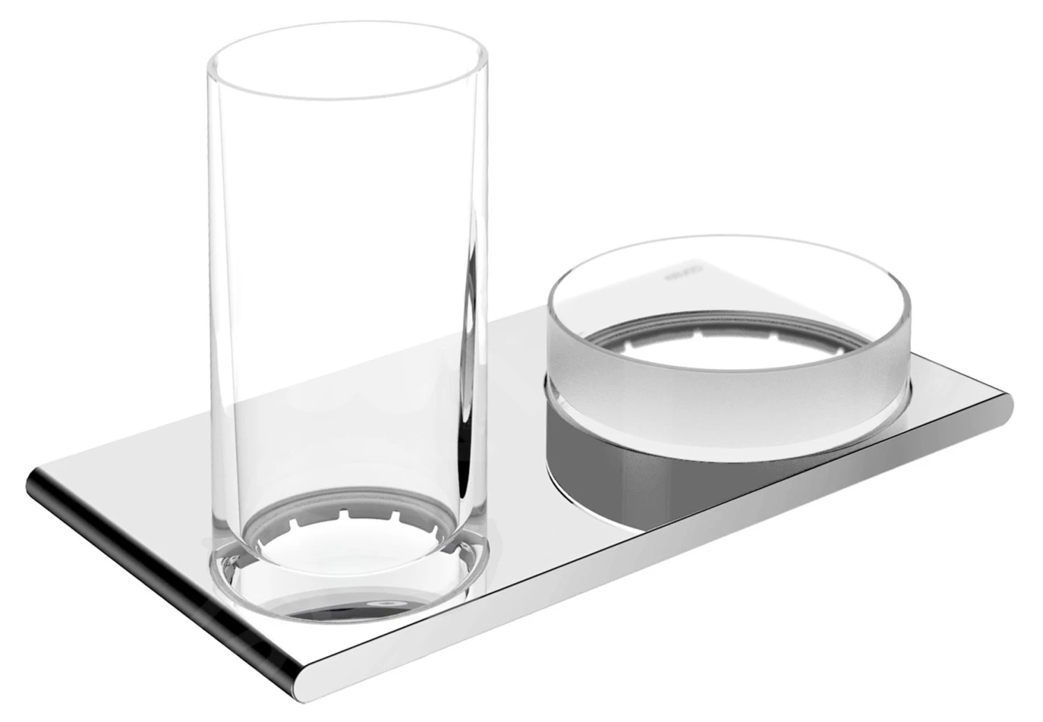 Beker voor tandenborstels en tandpasta met schaal en houder