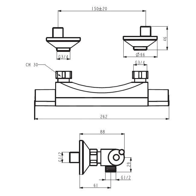 Thermostatische douchekraan Aqualight, zonder toebehoren