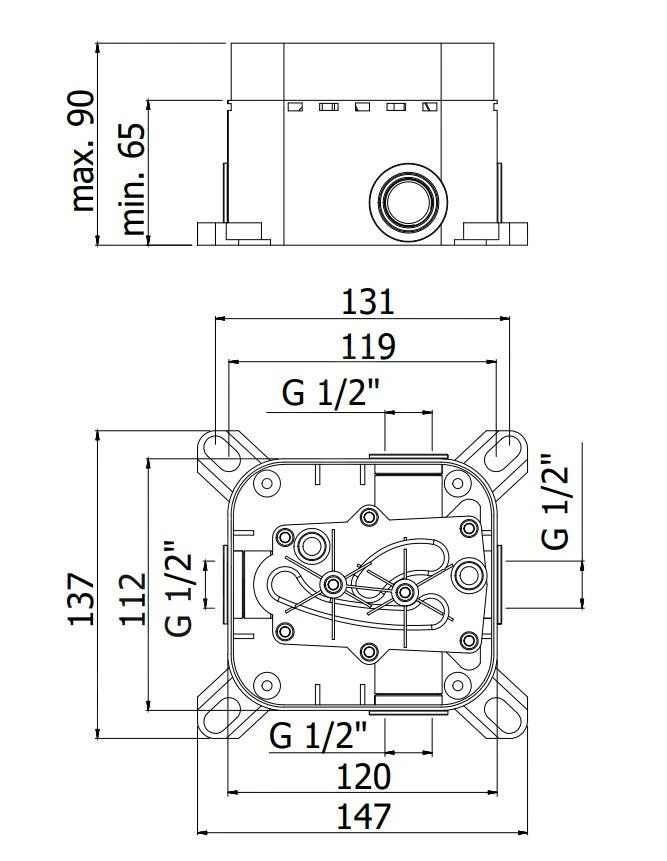 - inbouwdiepte: 65-90 mm