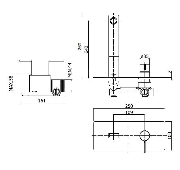 Eengreeps inbouw wastafelkraan met inbouwdeel.