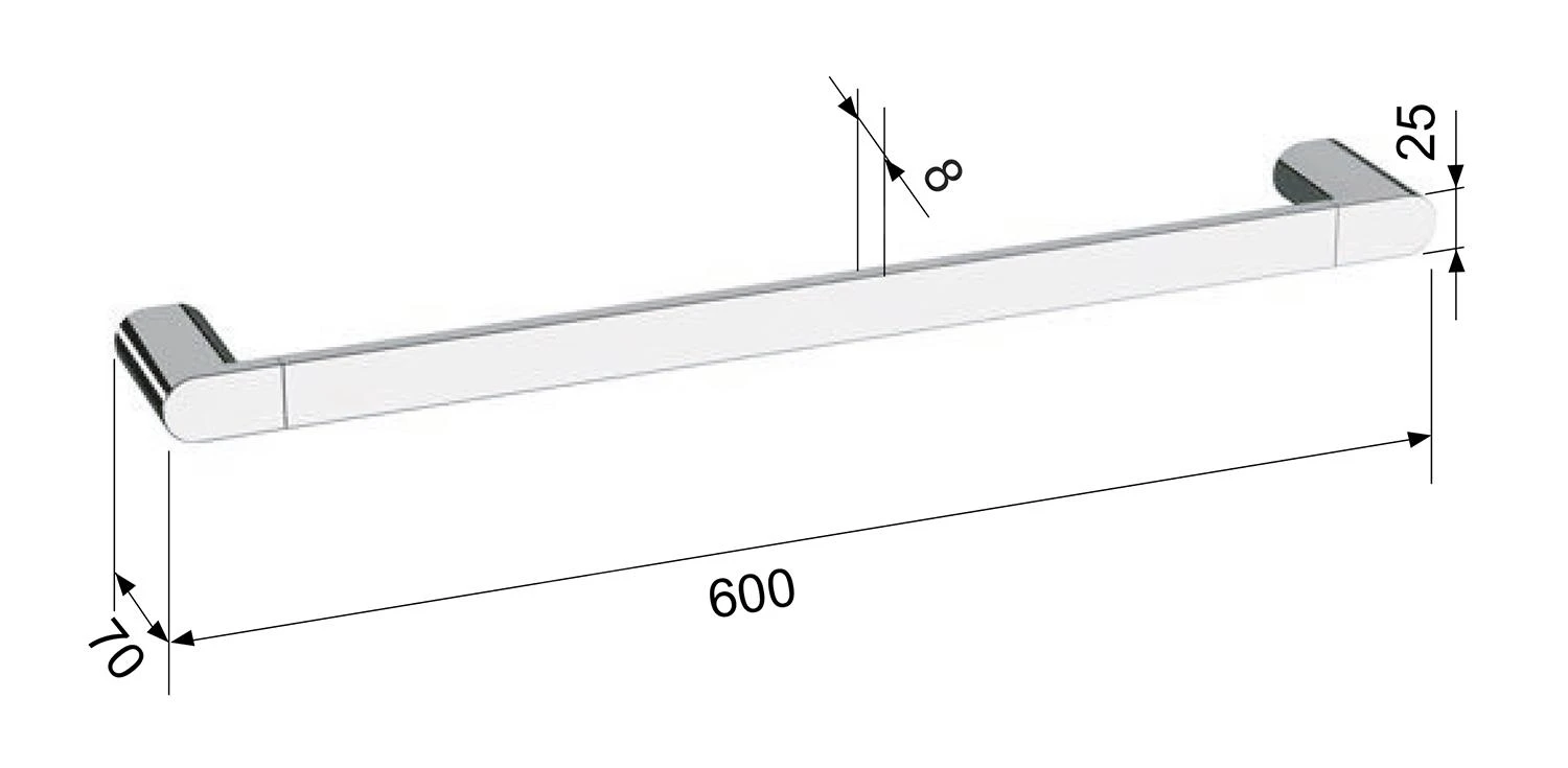 - afmetingen 600 × 25 × 70 mm