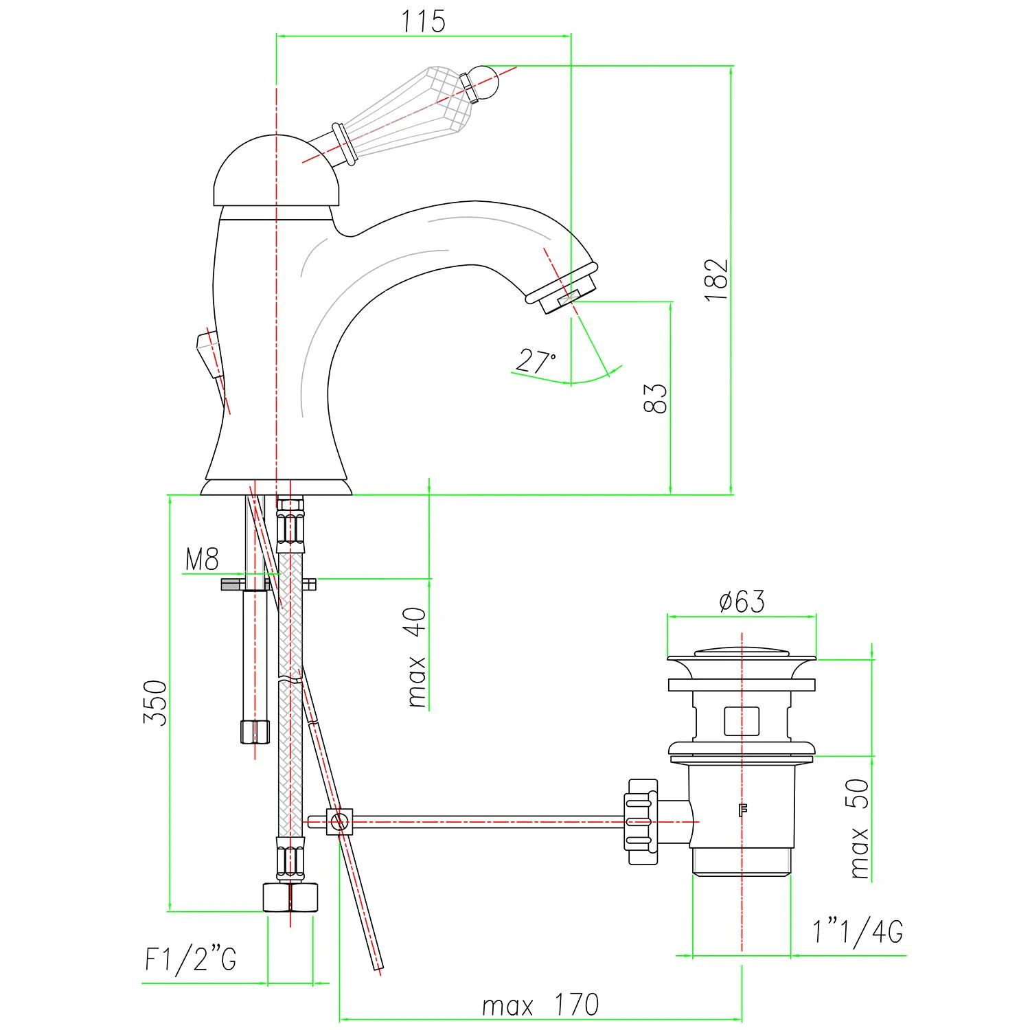 Kirké Crystal eengreeps staande wastafelkraan met waste