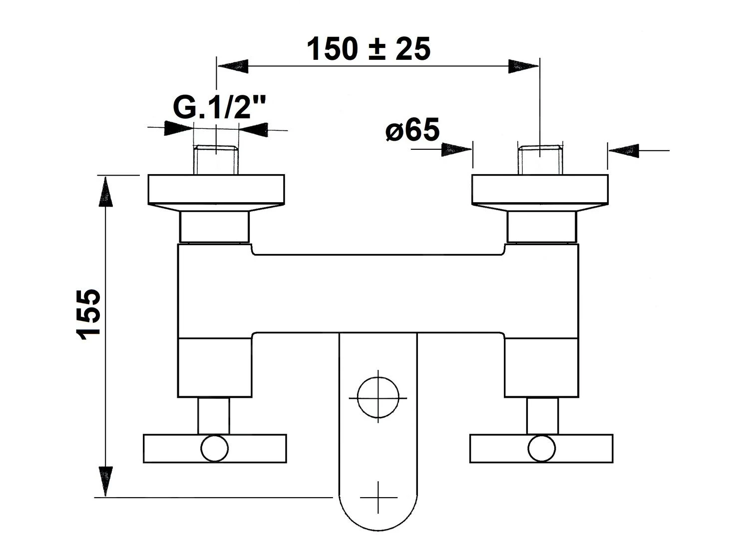 - hartafstand aansluitingen: 150 mm