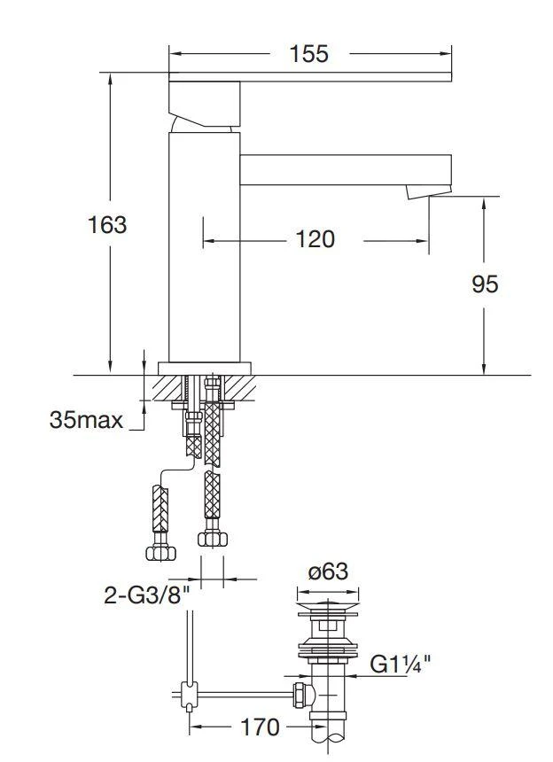 - kraanhoogte 163 mm
